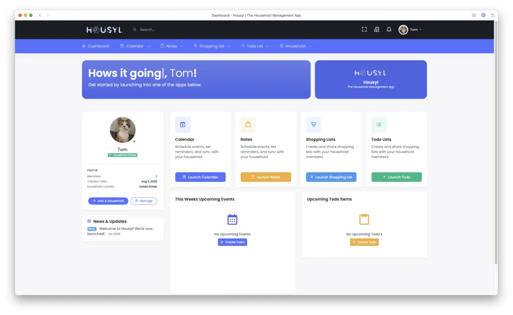Housyl is an app I created and designed solo for those that live with others, whether that be an entire family, roommates, or partners, by helping keep your household organized.