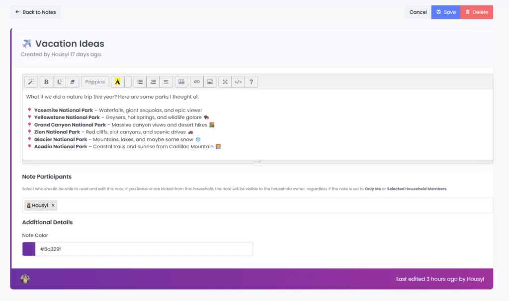 - Create an unlimited amount of to-do lists, either for the entire household or just select household members.