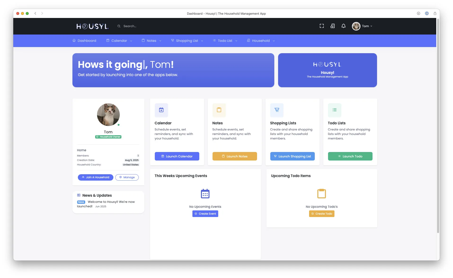 One of the core features of Housyl is that it’s celebrative. Users can be a part of their own household, or join someone else’s. Users can be in as many households as they wish, and easily switch between them with the click of a button.